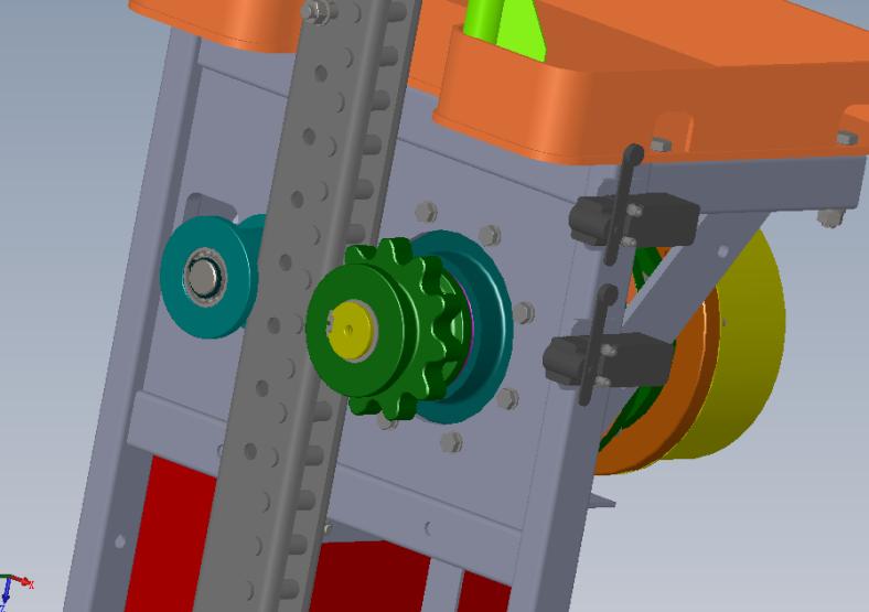提升機(jī)采用普通三項電機(jī)作為動力來源驅(qū)動鏈輪,驅(qū)動電壓:380V;功率:0.75KW;減速箱傳動比為:60。