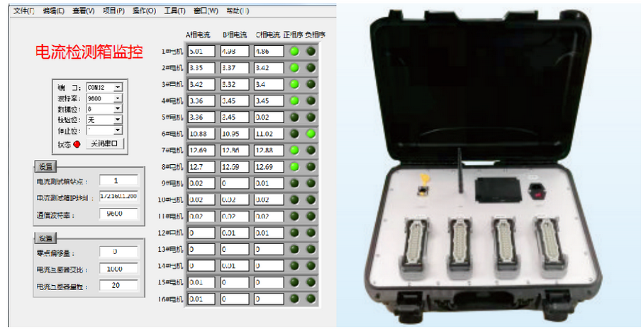 電流檢測(cè)箱是一款可以同時(shí)測(cè)多路三相用電設(shè)備的電流和相序數(shù)據(jù)便攜式設(shè)備,通過(guò)配帶的電流鉗夾,在不改變被測(cè)線路的條件下,單個(gè)電流測(cè)試箱最多可同時(shí)測(cè)量16個(gè)電機(jī)的三相電流和相序,測(cè)試數(shù)據(jù)通過(guò)MODBUS通信協(xié)議傳輸至電腦或PLC,支持二次開(kāi)發(fā)。