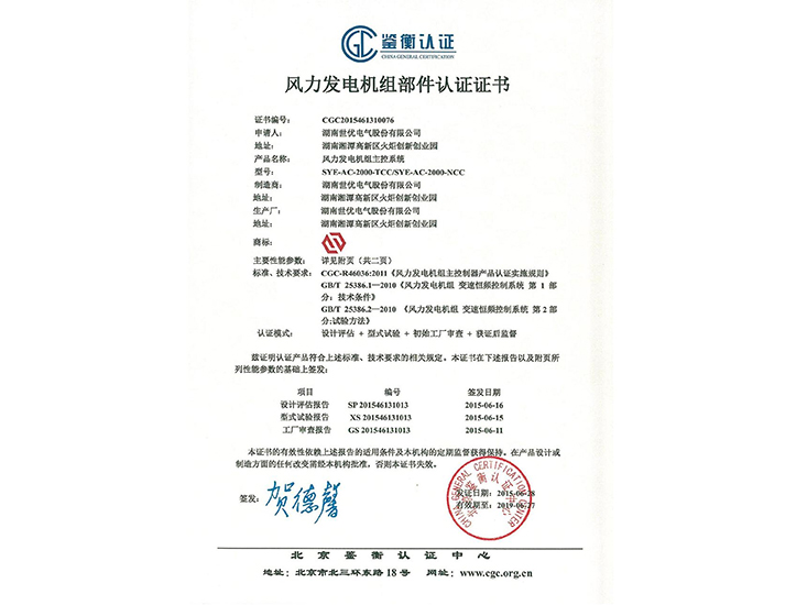 • 風(fēng)力發(fā)電機(jī)組主控系統(tǒng)鑒衡認(rèn)證