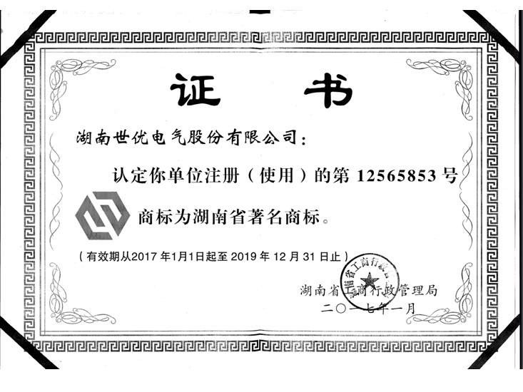 • 省級(jí)著名商標(biāo)證書